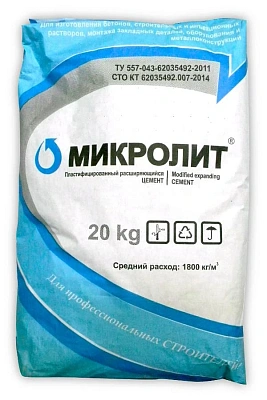 «Микролит» – сухая смесь, состоящая из цемента, тонкодисперсного минерального наполнителя и модифицирующих добавок, придающие пластифицирующие и расширяющиеся свойства и регулирующие их.